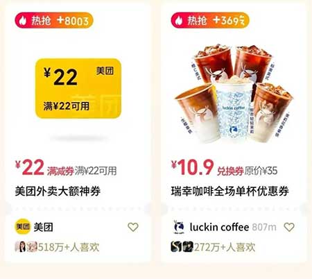 2、美团饮品补贴限时低价秒杀!直接买对应饮品兑换券抵扣使用
