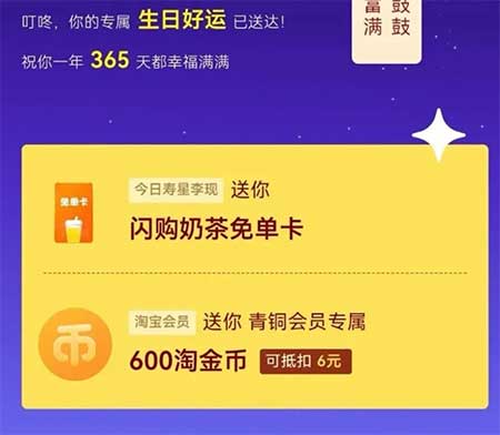 2 淘宝生日礼抽奶茶卡