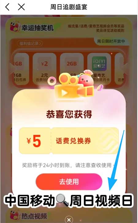 根据图片路径进去,进去做任务攒福利值,抽奖概率中5元话费券