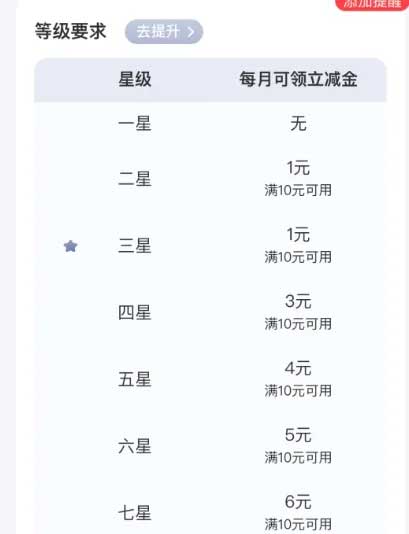 邮储二星级及以上用户领1-6立减金
