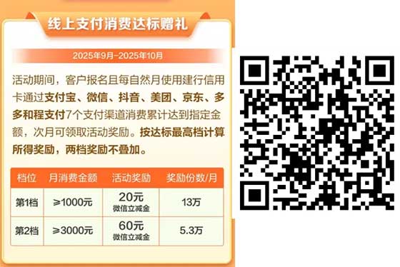 10月建行xyk 消费达标的小伙伴记得 11月20日领60元/20亓立减金