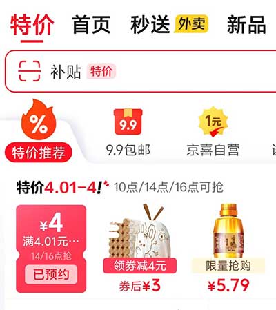 概率得10-2京东购物小程序券 或者 外卖5-4可叠加券