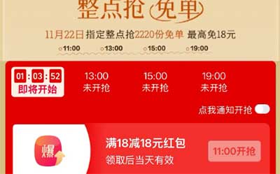2025年11月22日 小雪活动,浦发1元购,微信银行立减金,饿了么18-18等