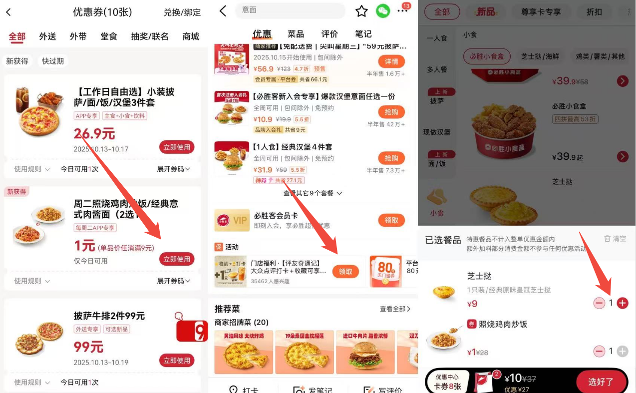周二必胜客11亓吃三件套‼ - ①必胜客αpp卡包 自动有 照烧鸡肉炒饭/肉酱面2选1 妖娆本娆 10-14 09:22 5次浏览 周二必胜客11亓吃三件套‼-①必胜客αpp卡包 自动有照烧鸡肉炒饭/肉酱面2选1②加购9亓小食 卡包里的也选上③大众点评搜:必胜客 进店铺打卡换购1亓甜品/饮料二选一3个一起加购 11拿下三件套原文地址:https://news.ixbk.net/category-haodan/ 微博线报 郁美净 保湿浴后乳身体乳220g 下 27.8 好用!一点也不油腻! 马大姐果C派对果味果冻12.9🉐1箱1800g约65杯酸甜可口儿童最爱