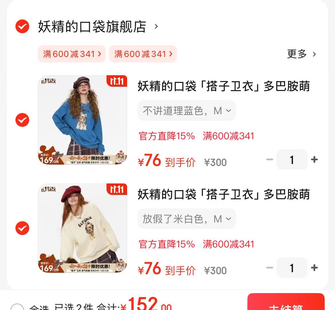 任选两件152元,折76/件