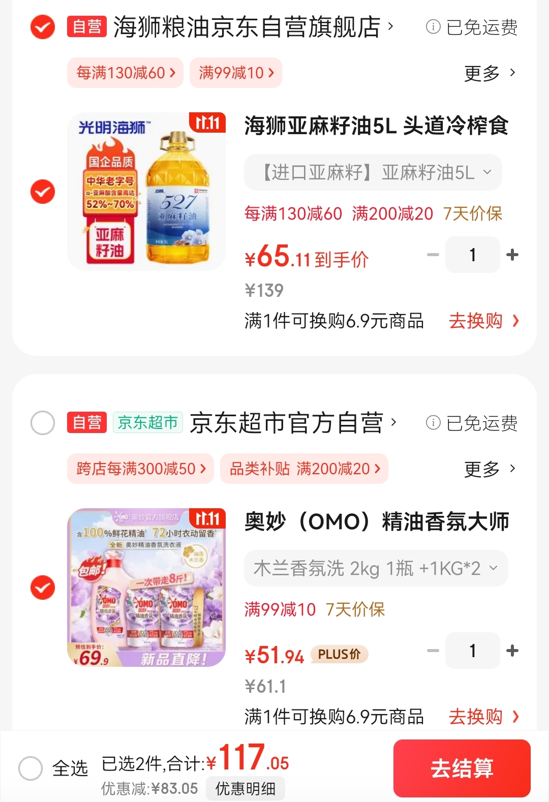 先领200-20补帖卷 自营 海狮 527亚麻籽油 5L 凑后65.11元 之前要79 妖娆本娆 10-15 07:12 5次浏览 先领200-20补帖卷https://u.jd.com/BDKOEKz【自营】海狮 527亚麻籽油 5Lhttps://u.jd.com/BGKCtQ7拍1件凑后65.11元;之前要79凑单买1https://u.jd.com/BaKOrsj原文地址:https://news.ixbk.fun/category-haodan/ 微博线报 先领99-20补贴卷供港壹号纯牛奶200ml*12盒*3箱拍下69元;折23/箱 镁団外卖-天天津貼1w份兔単最高兔20亓30%概率兔単刚需试试