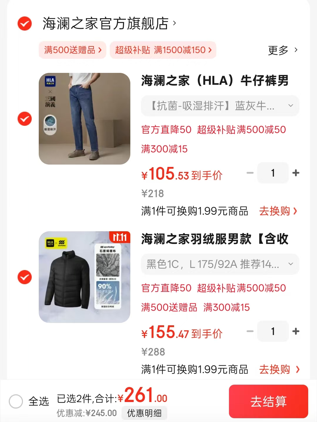 plus领500-50卷 再领500-80 新会员入会即送15优惠券 海澜之家服饰组合