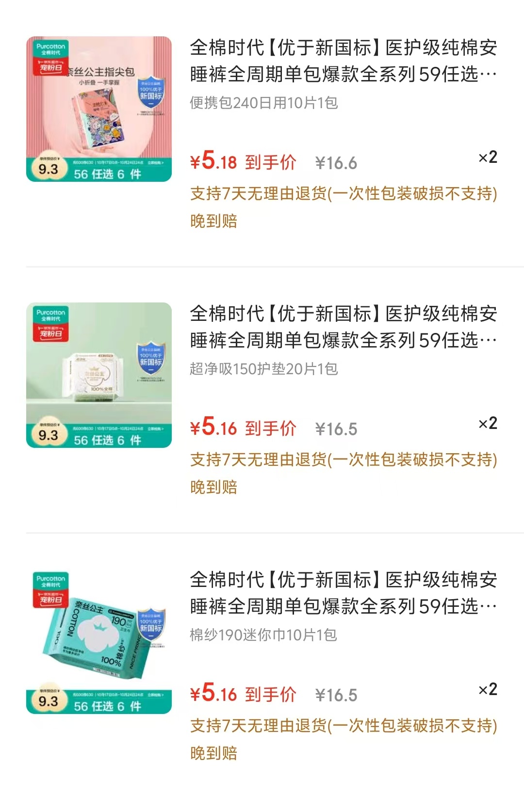 先领45-5卷 全棉时代医护级日夜全周期任选 任选31元 最多到手120片 折0.2/片