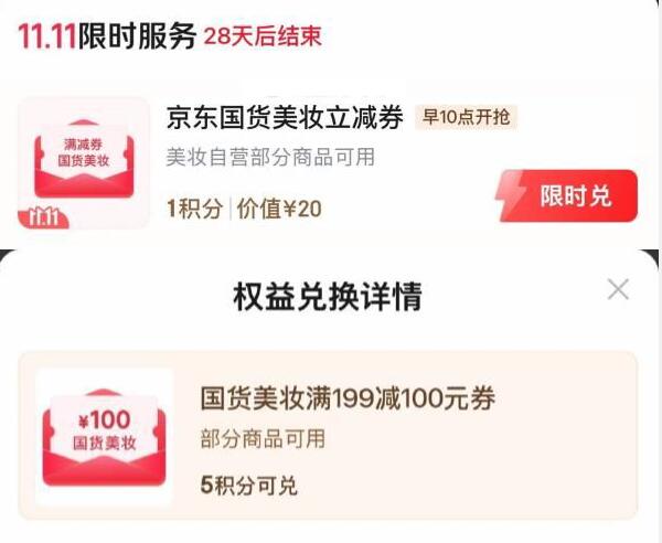 plus 5积分可以兑换199-100美妆卷