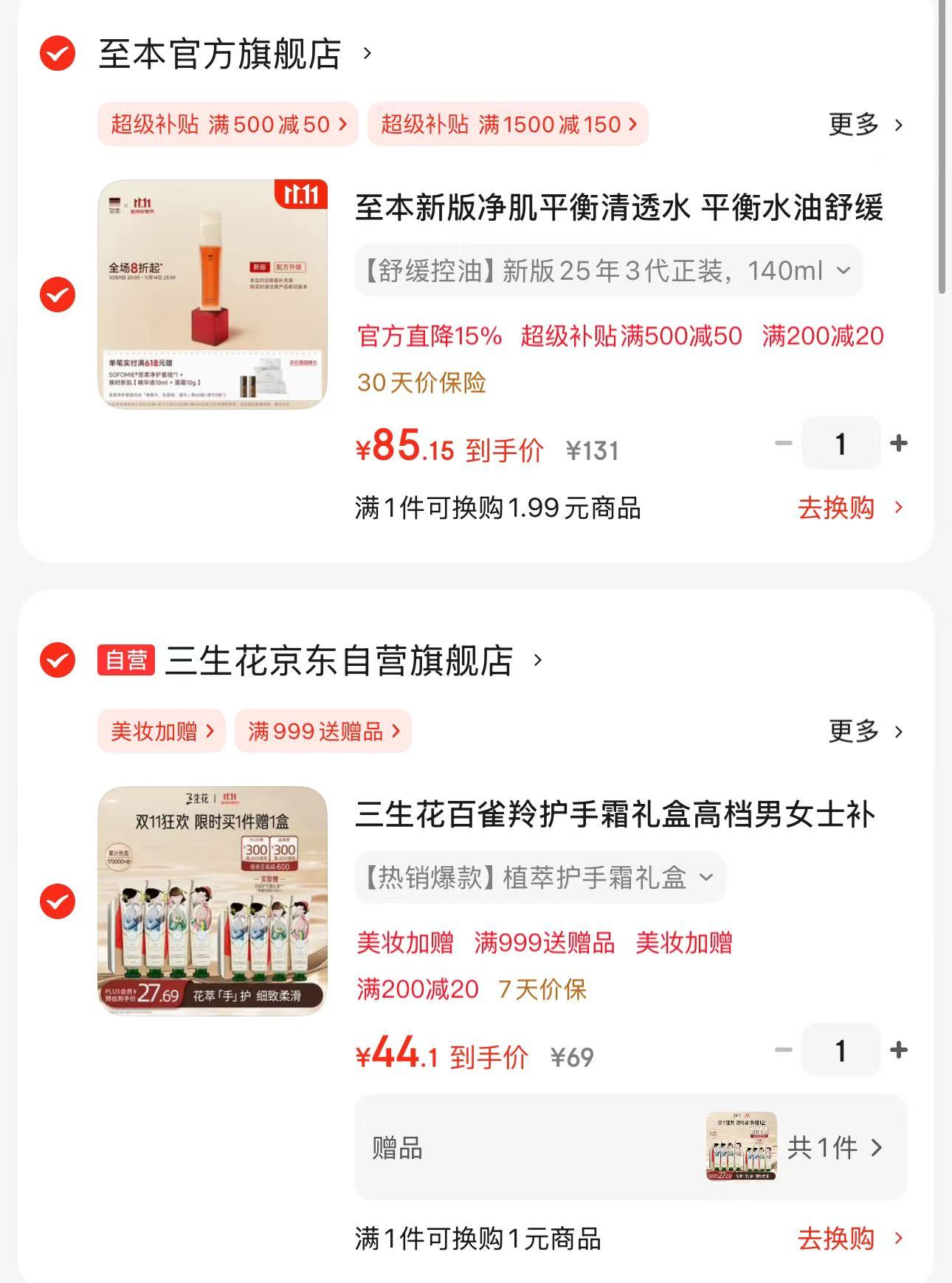 跳转APP领2张卷 ① ② 自营三生花 护手霜礼盒装 40g*4支 拍 凑 PLUS凑后44.1元