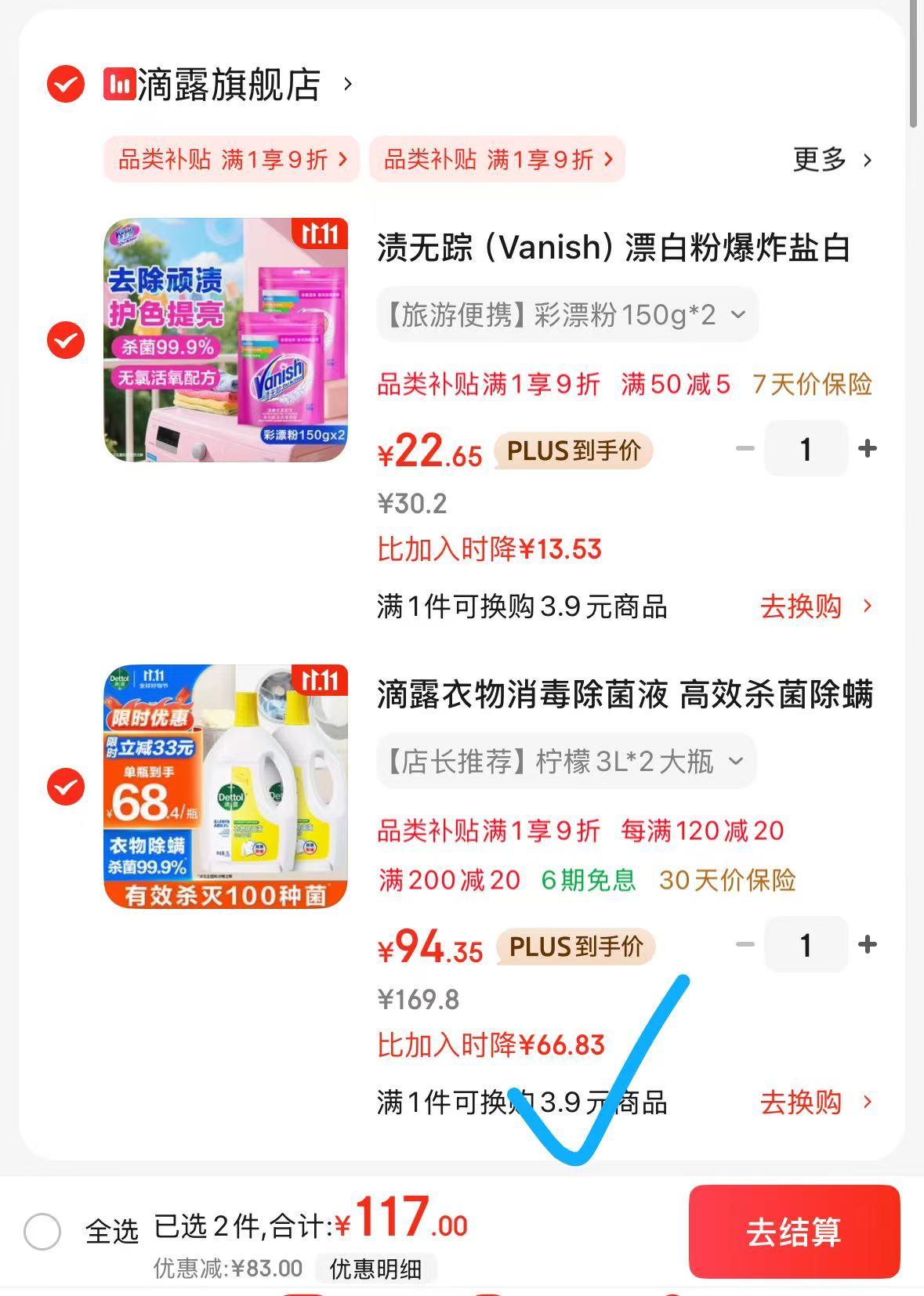 快!滴露突发lou忦 先领200-20卷 Plus领9折补帖卷 滴露衣物消毒除菌液